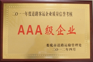 道路客運(yùn)企業(yè)質(zhì)量信譽(yù)考核AAA級(jí)企業(yè) |